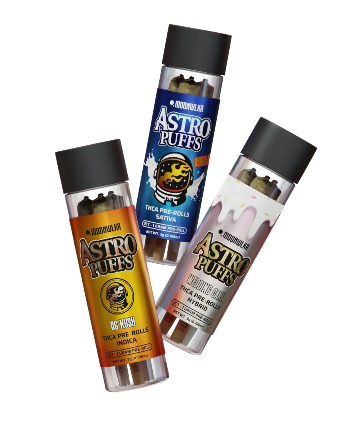 The MoonWlkr THC-A Prerolls come in 3 different flavors in multiple strains, meaning that we have something for everyone to enjoy.